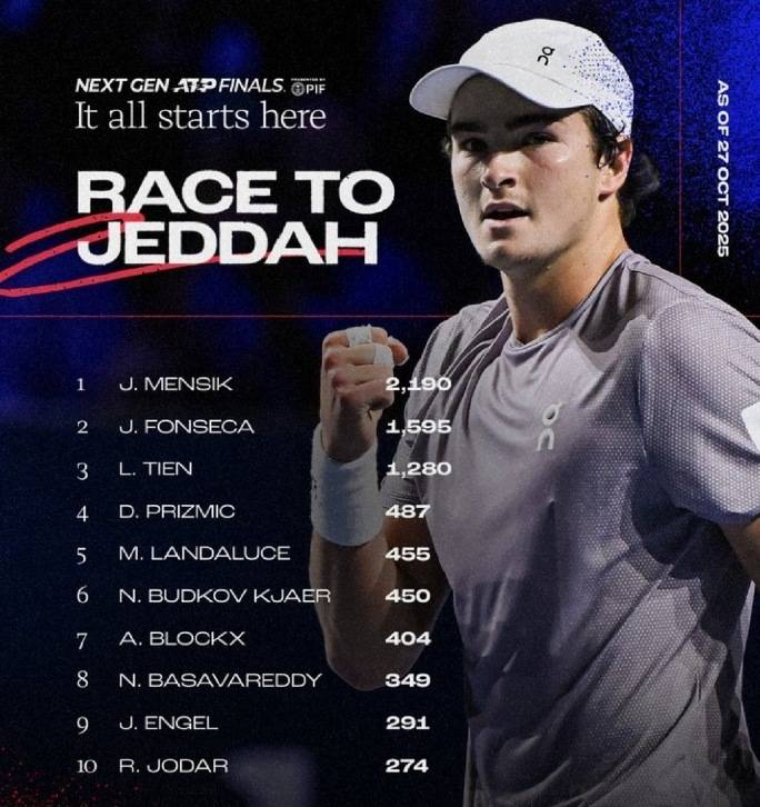 我们再来关注ATP吉达新生力量总决赛。再有半个多月,2025 ATP新生力量总决赛就将在沙特阿拉伯的吉达举行了。相比于去年,今年的新生力量总决赛在中国球迷中的关注度有所下降。主要是因为去年入围总决赛的中国小将商竣程因伤病,全年没有打多少比赛,因此没有获得足够的积分,无缘再次入围这项青年才俊参加的年终盛会。再加上去年的冠军、巴西新星丰塞卡也因伤退赛,因此阵容的关注度上有所降低。
