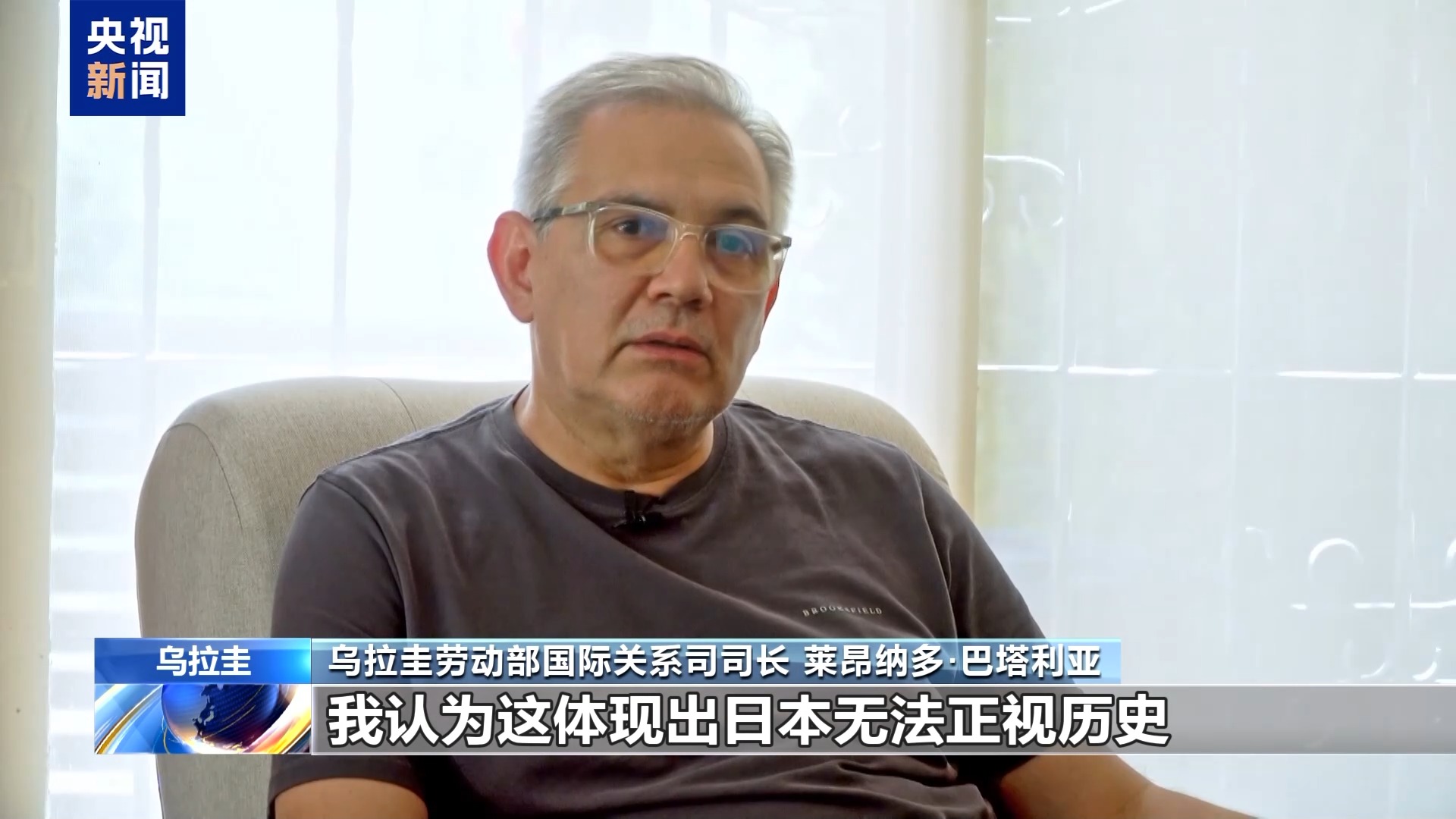 乌拉圭劳动部国际关系司司长 莱昂纳多·巴塔利亚:日本首相发表错误言论是一种挑衅行为。我认为这体现出日本无法正视历史,要知道日本是二战战败国,如今日本右翼势力却试图重拾军国主义,这种做法对国际关系稳定毫无益处。
