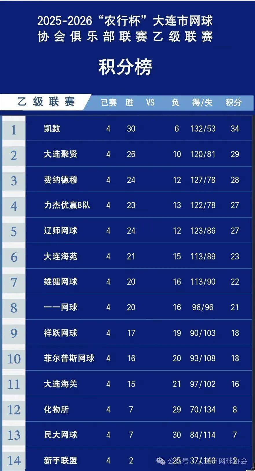 网球联赛,ATP赛程,WTA积分,网球直播入口,网球世界排名,四大满贯赛/实时更新全球网球联赛2025赛程、比分、排名及直播,全面覆盖ATP男子联赛、WTA女子赛事、四大满贯及国内网球比赛,为中文网球迷提供权威资讯与竞猜预测支持。2025-2026“农行杯”大连市网球协会俱乐部乙级联赛第四轮燃情落幕。