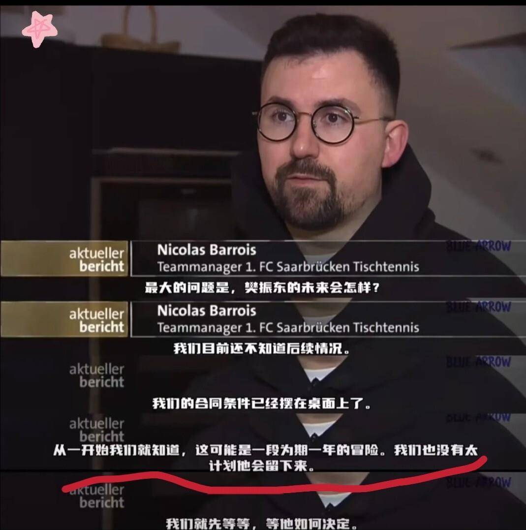 阵容补强完成,所有人的目光自然转向了樊振东的未来。 当被德国媒体问及“最大的问题——樊振东的未来会怎样”时,经理巴鲁瓦的回答非常直接。 他表示,俱乐部已经将续约条件摆在了桌面上,但目前还不知道后续情况。