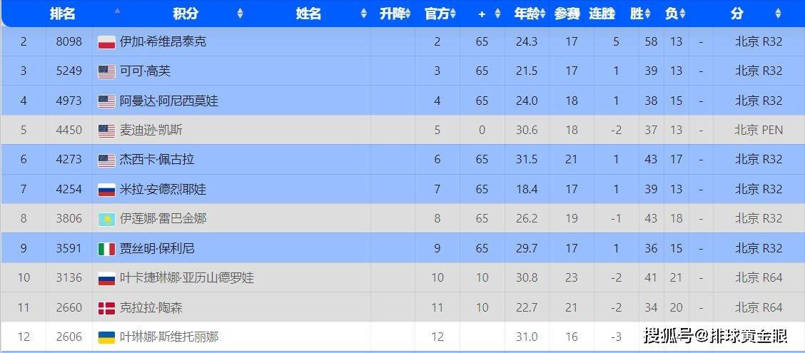网球联赛,ATP赛程,WTA积分,网球直播入口,网球世界排名,四大满贯赛/实时更新全球网球联赛2025赛程、比分、排名及直播,全面覆盖ATP男子联赛、WTA女子赛事、四大满贯及国内网球比赛,为中文网球迷提供权威资讯与竞猜预测支持。25年中网结束了下半区的16强之争。在第三轮焦点战中,中国36岁老将张帅在首盘2-6落后的情况下顽强追平,并一度手握三个盘点,最终以11-13输掉抢七。第二盘,张帅未能找回气势,对手阿尼西莫娃则是越战越勇,最终张帅0-6再输一盘。阿尼西莫娃凭借着本场胜利,解锁第150场WTA级别胜利,她也成为第三位达成这项成就的00后球员,跟随斯瓦泰克和高芙的步伐。