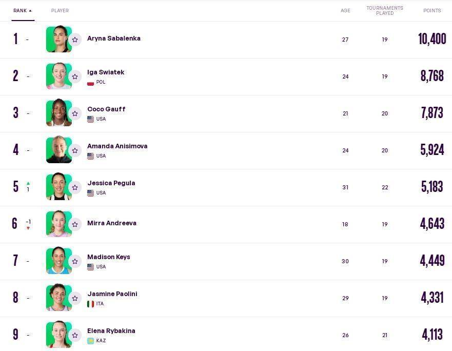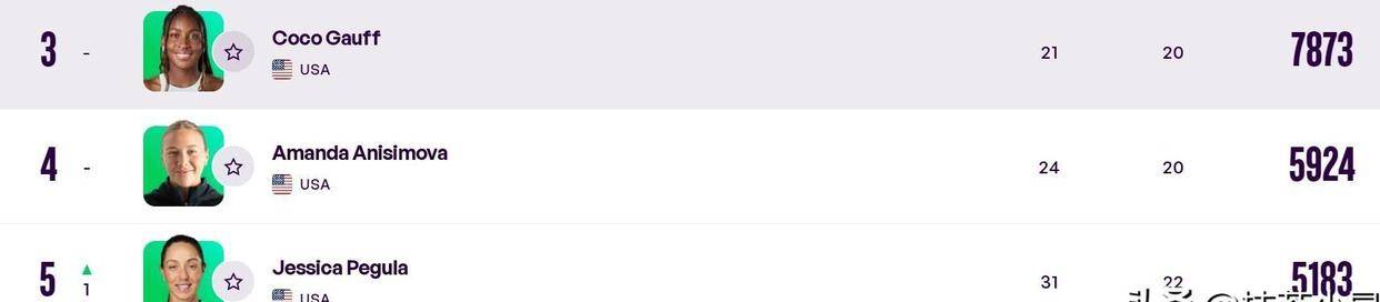 美国女网的深度同样惊人:TOP50中有10名美国球员,TOP100中多达17人。 这种集团优势源于后小威时代的人才井喷,高芙、凯斯、阿尼西莫娃等球员已形成梯队效应,重现了1999-2003年威廉姆斯姐妹时代的霸主格局。
