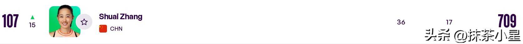 中国球员方面,随着张帅时隔8年再次打进WTA250广州站四强,在拿到98个的积分后,她的世界排名跃升15位来到NO.107,正式超越袁悦,成为“金花三姐”,仅次于郑钦文和王欣瑜。