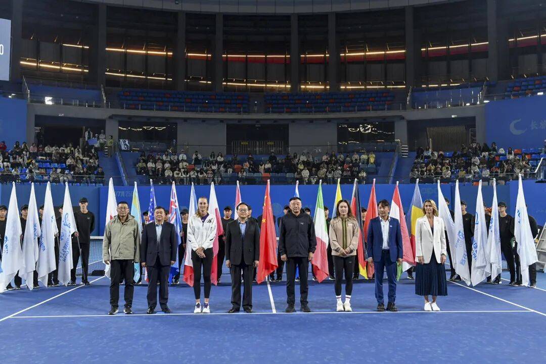 当晚18时,开赛仪式在庄严的国歌声中拉开帷幕。志愿者与球童手持参赛国家和地区旗帜、江网会旗入场,彰显浓厚的国际赛事氛围。张松涛宣布2025年江西网球公开赛正式开赛,并将会旗正式交接给杜少华副市长,象征赛事承办工作的全面启动。球员代表共同为比赛开球,将现场气氛推向高潮。