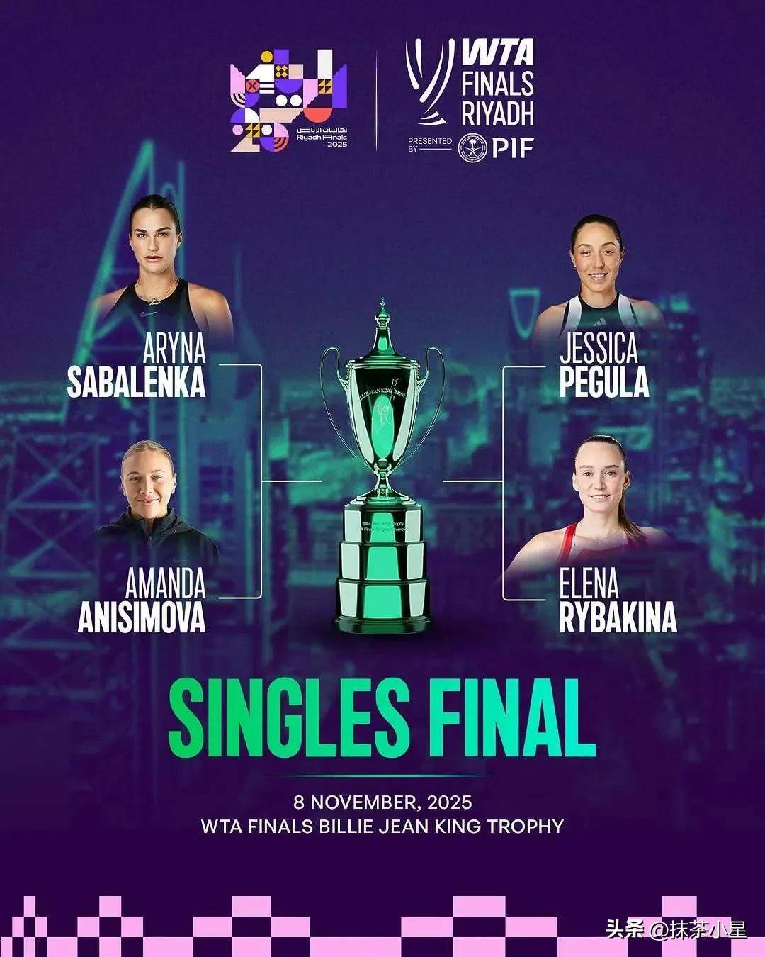 网球联赛,ATP赛程,WTA积分,网球直播入口,网球世界排名,四大满贯赛/实时更新全球网球联赛2025赛程、比分、排名及直播,全面覆盖ATP男子联赛、WTA女子赛事、四大满贯及国内网球比赛,为中文网球迷提供权威资讯与竞猜预测支持。北京时间11月8日,2025WTA利雅得年终总决赛半决赛中,赛会6号种子莱巴金娜在先丢一盘的情况下,逆转战胜了5号种子佩古拉,以4-6、6-4、6-3的比分强势晋级决赛。这是她职业生涯首次闯入总决赛决赛,而这场胜利也让她成功集齐了所有级别赛事的决赛。